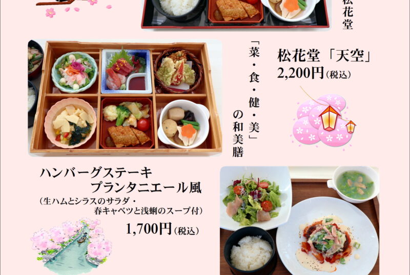 PDFはこちら コラッセふくしま12階レストランki-ichigoより4月ランチのご案内です。 美活&健康ランチ!旬を堪能する松花堂「青空」「天空」 春を味わうご褒美ハンバーグ「ハンバーグステーキ プランタニエ…