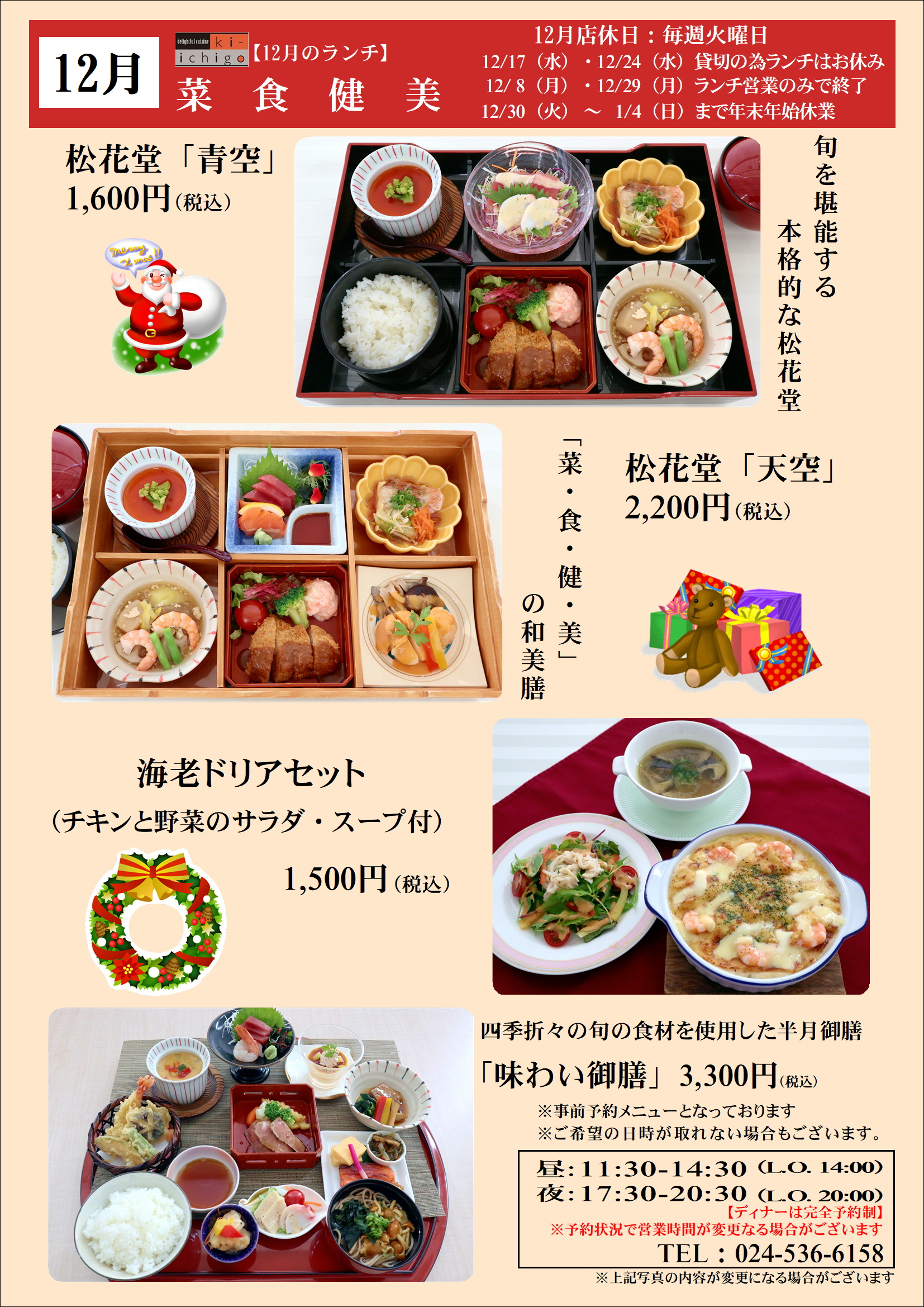 コラッセふくしま12階レストランki-ichigoより12月ランチのご案内です。